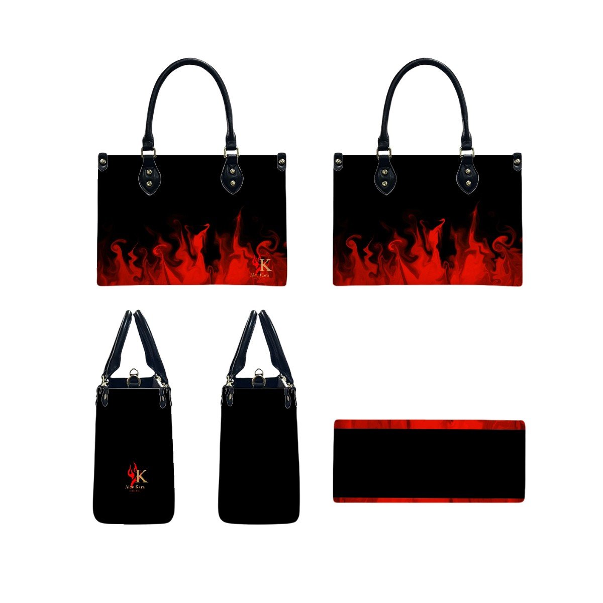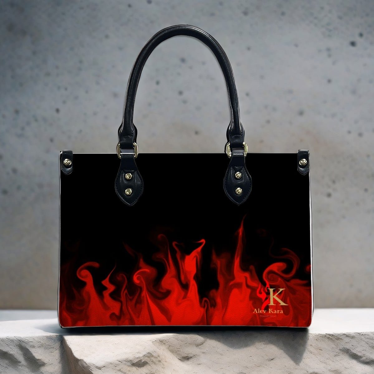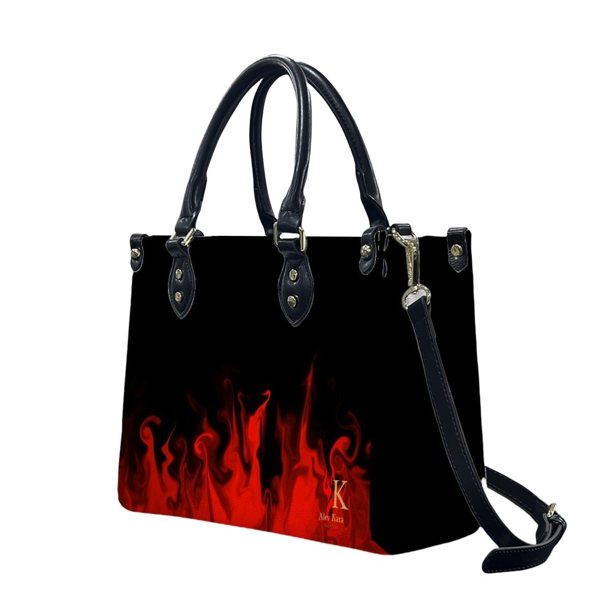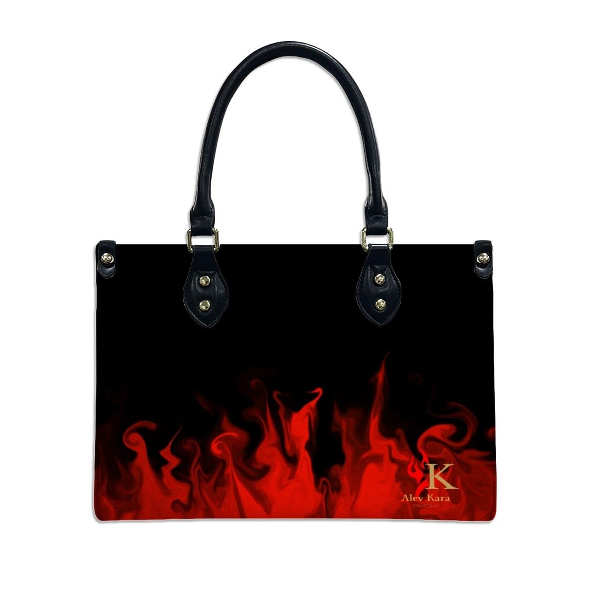 PU Tote Bag for Women “Signature Collection” Black with Red Flames