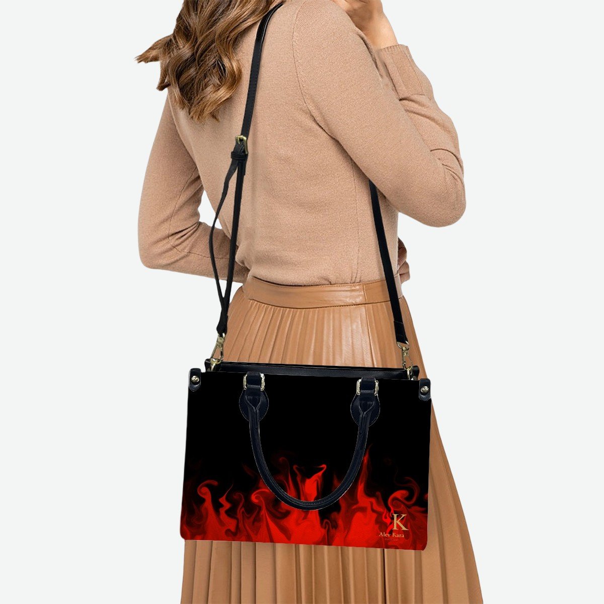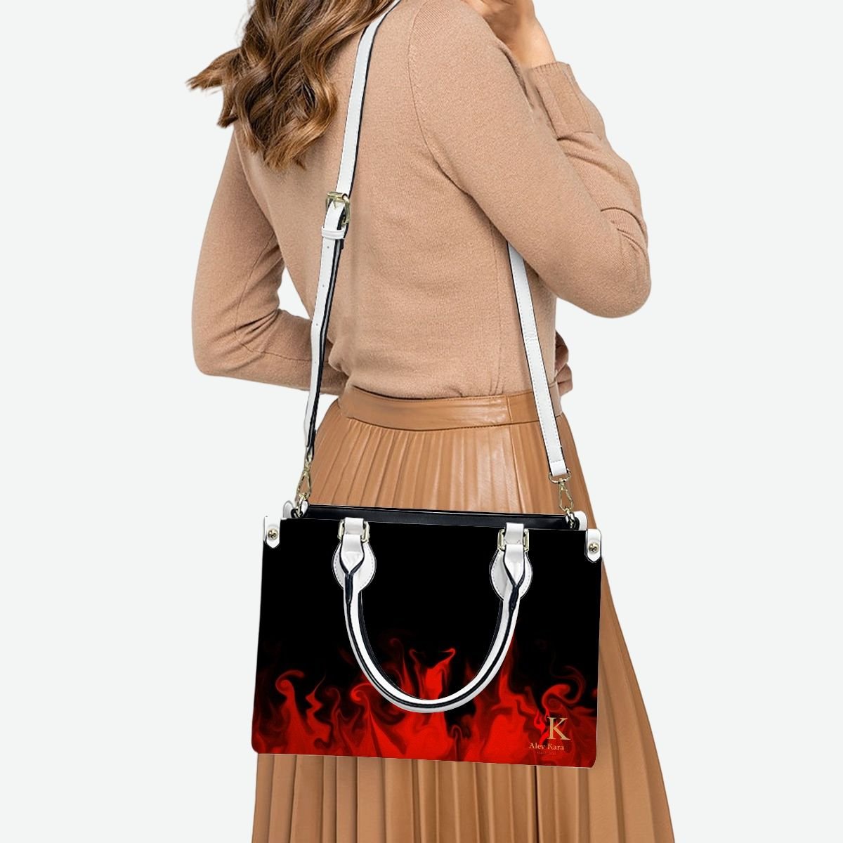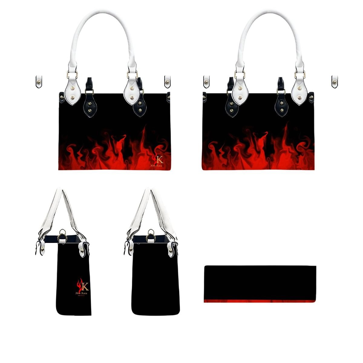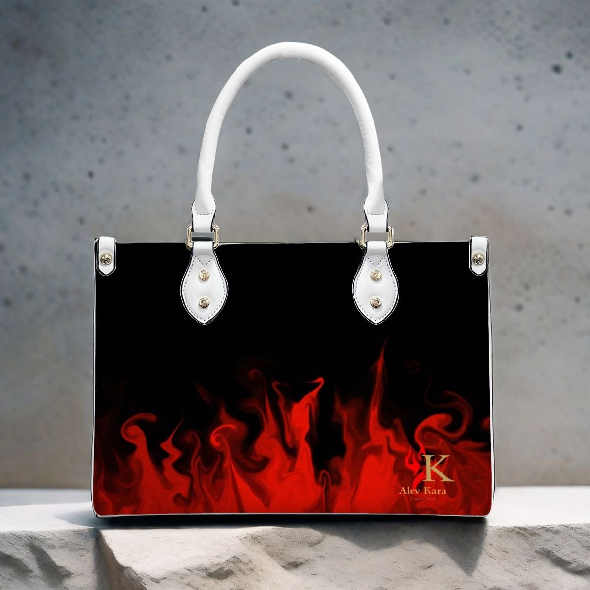 PU Tote Bag for Women “Signature Collection” Black with Red Flames