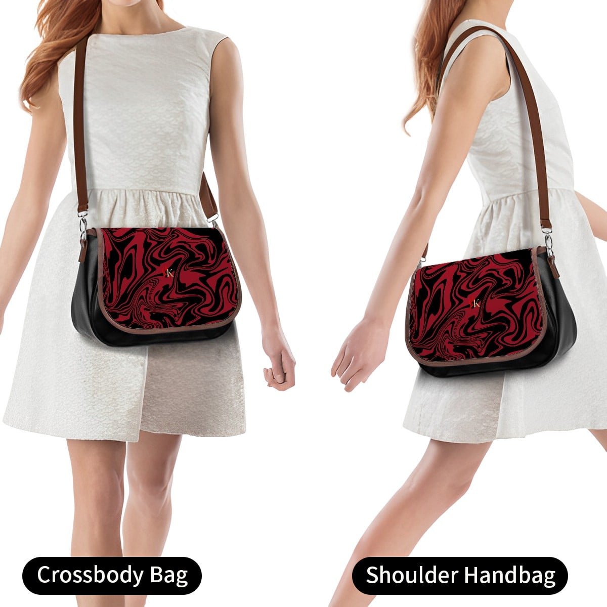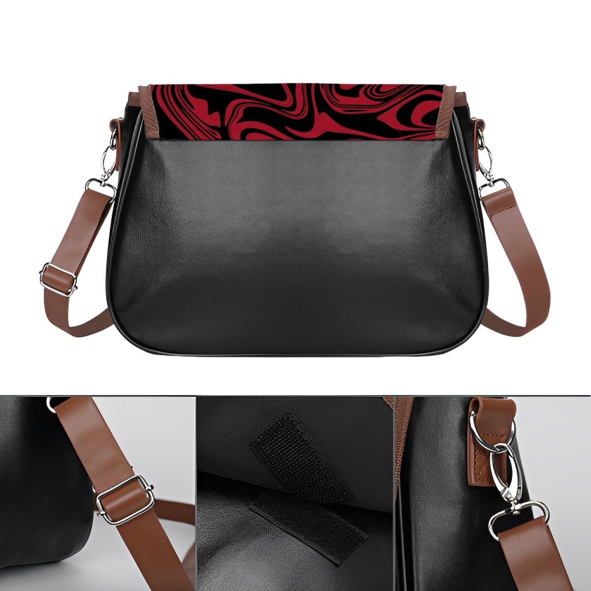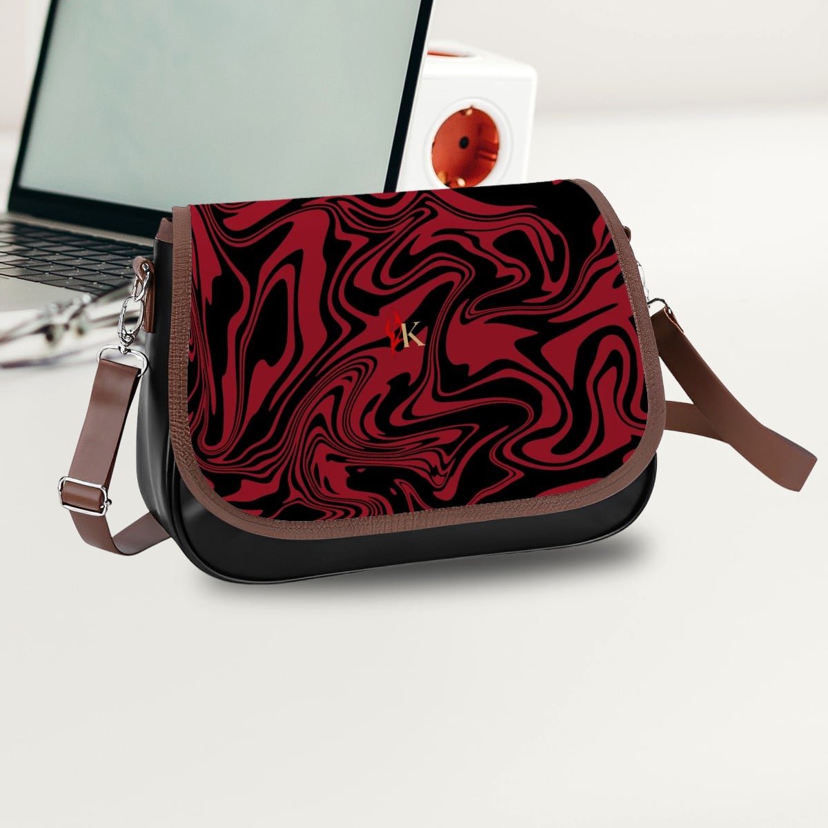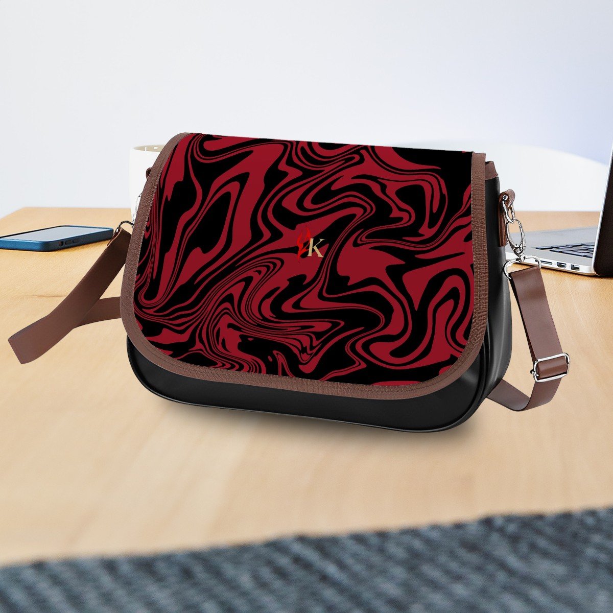 Be the first to review “Leather Shoulder Bag “Swirly Girl, Deep-Red & Black””
